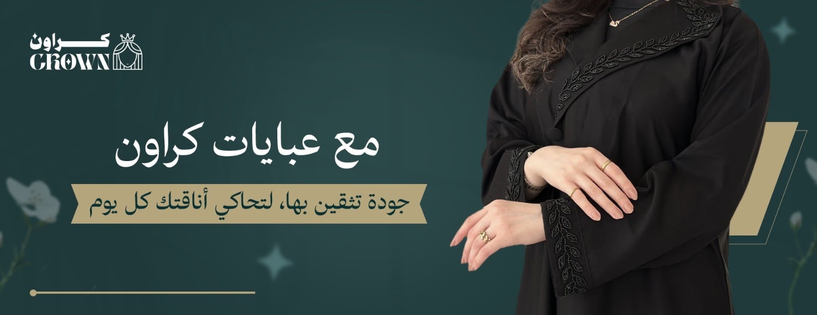 في عبايات كراون نؤمن أن العباية أكثر من مجرد قطعة ملابس فهي رمز للأناقة والهوية والتميز انطلقنا بشغف لتقديم عبايات تجمع بين الأصالة والفخامة وتواكب في ذات الوقت روح العصر وتطوراته في عالم الموضة.