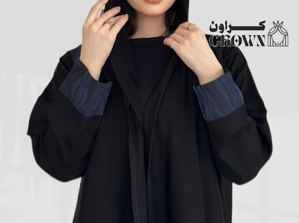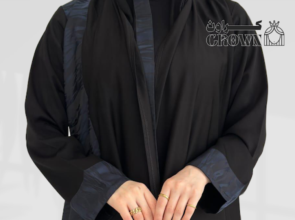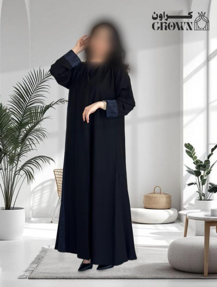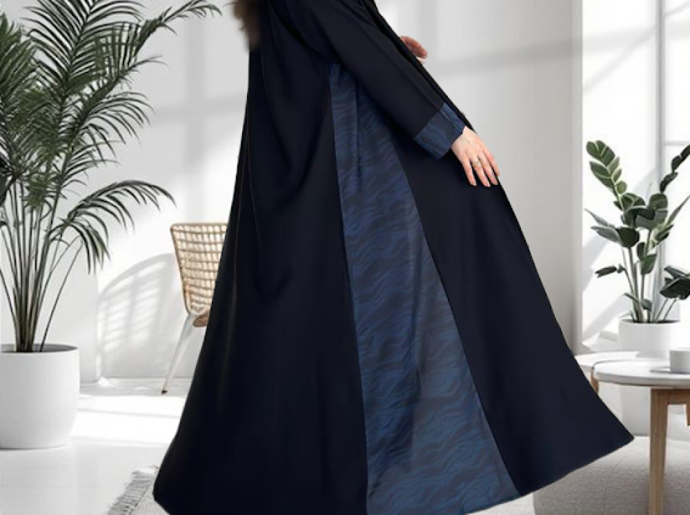 قصة العباية: نص كلوش مع تدخلية ناعمة باللون الأزرق