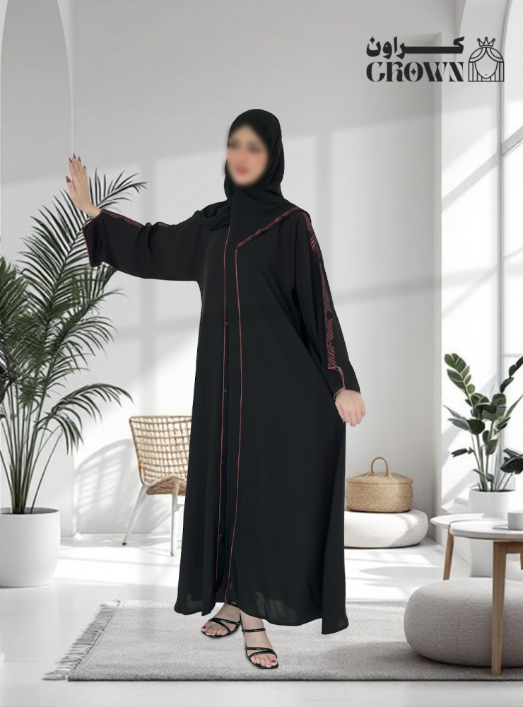 قصة العباية: نص كلوش مع تطريز على الأكمام