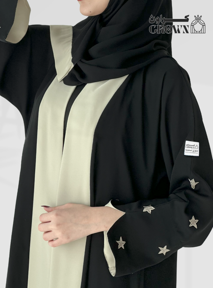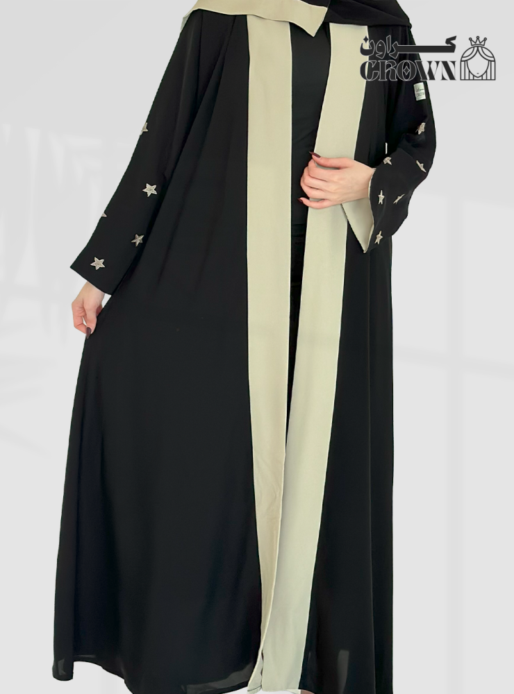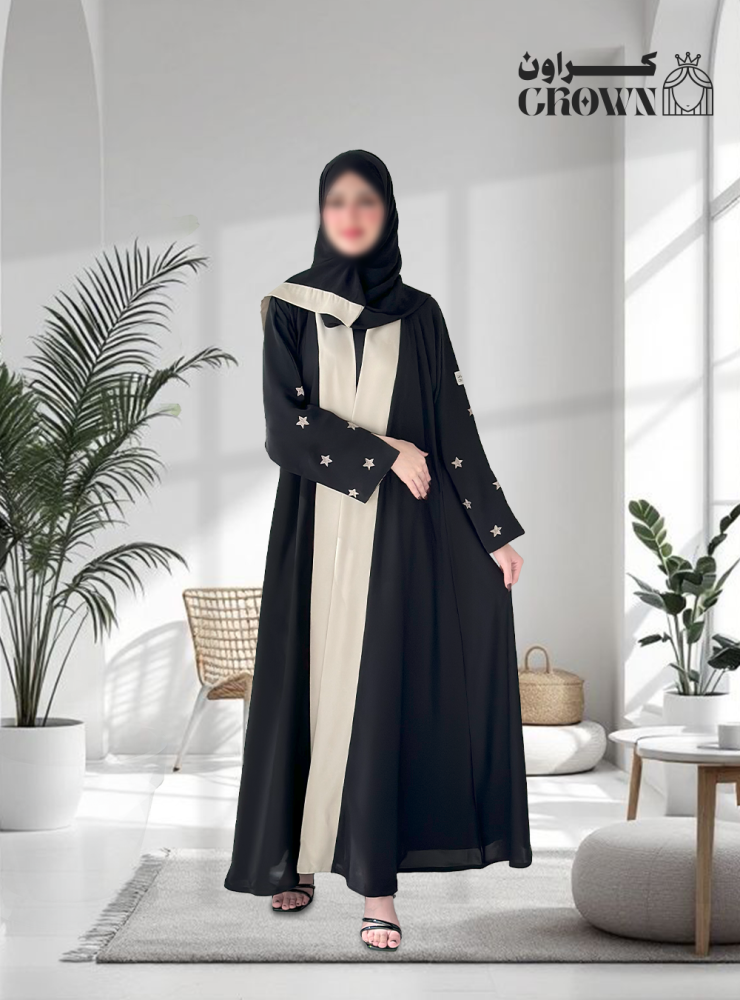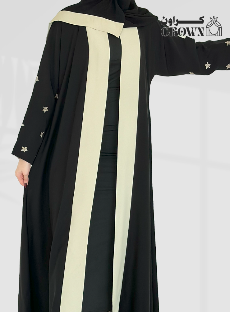 قصة العباية: نص كلوش مع تدخيلات باللون البيج